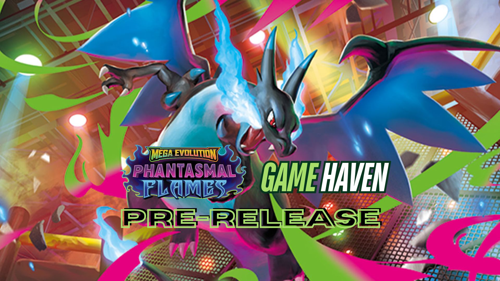 Its a new era for the Pokemon TCG! Get a preview of the newest Pokémon set Mega Evolution—Phantasmal Flames at the Game Haven prerelease. Pre sign up price $30. Players will get a Build and Battle kit with four booster packs and an evolution pack to build their 40-card deck with. At the end of […] |
